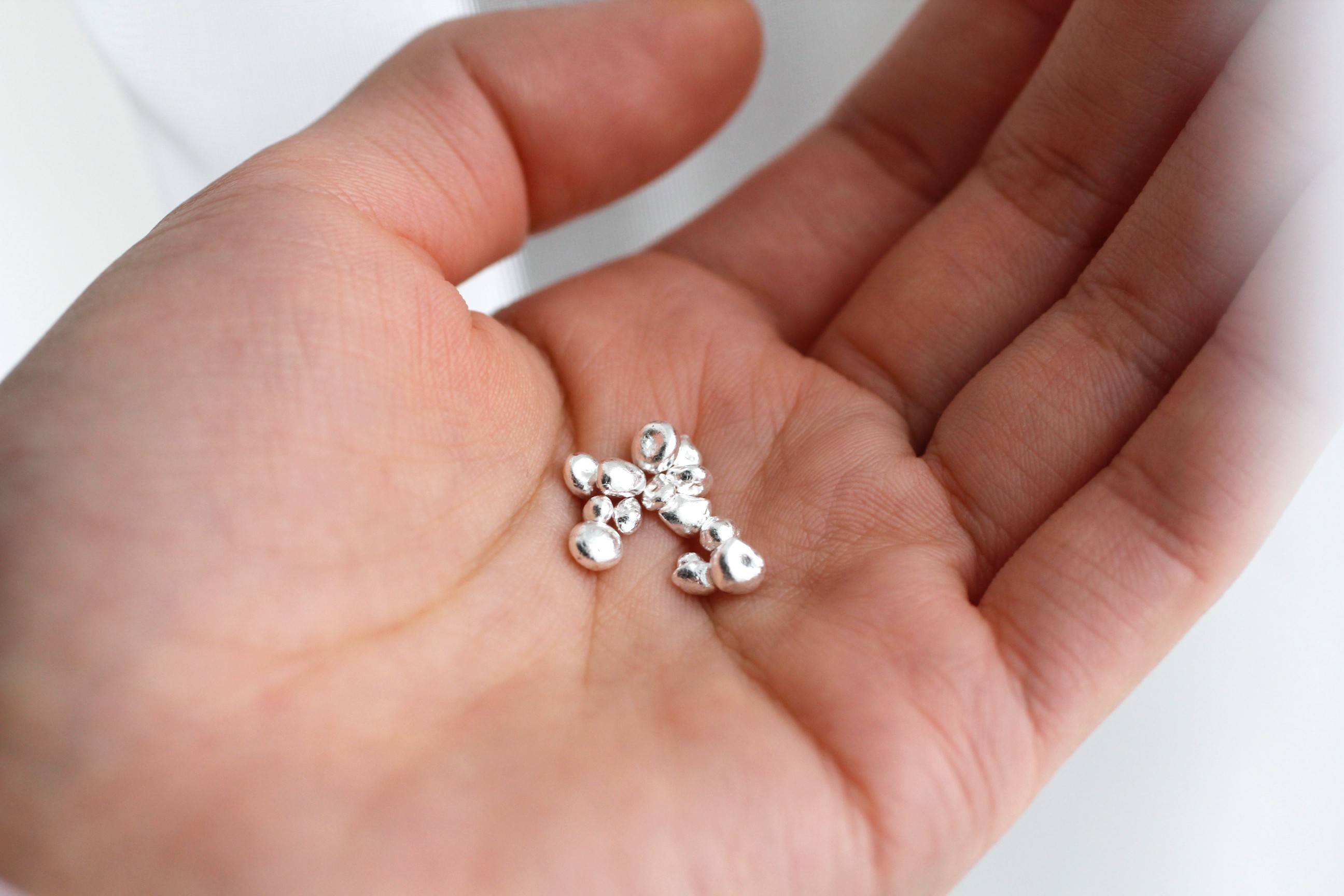 In university I learned to save even the smallest filings, reborn into new material. Sometimes I reclaim silver from antiques or my grandmother’s jewellery, giving it a new beginning while carrying forward its quiet history.